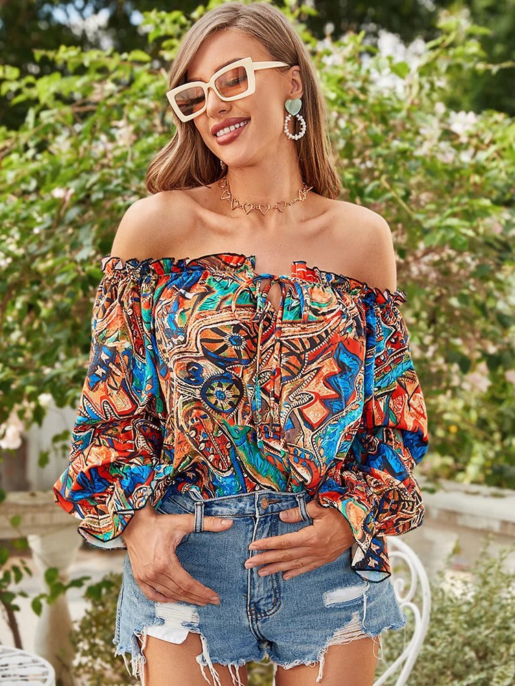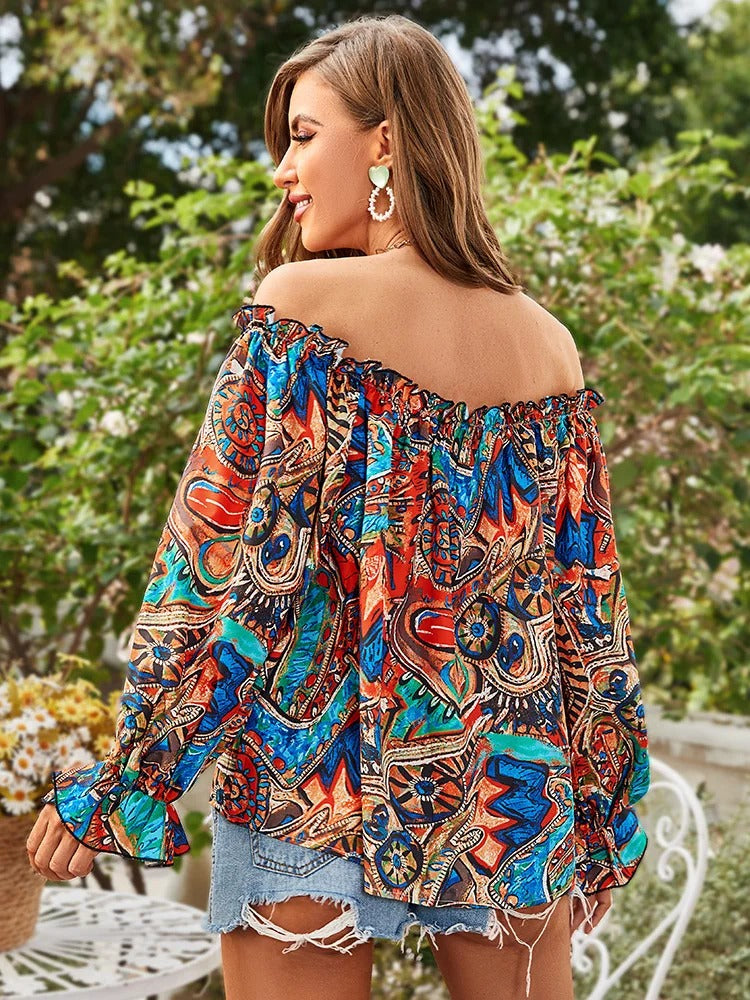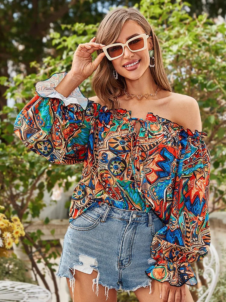 Ce chemisier incarne l'esprit vintage avec son imprimé tribal audacieux et ses détails de volants subtils. Qu'il s'agisse d'une escapade en ville ou d'une journée décontractée entre amis, ce haut s'adapte parfaitement à toutes les occasions.